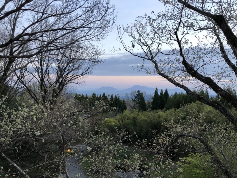 こちらのお茶を持って、テラスで時間とともに移りゆく阿蘇山を眺めるのも、至福のときでした。